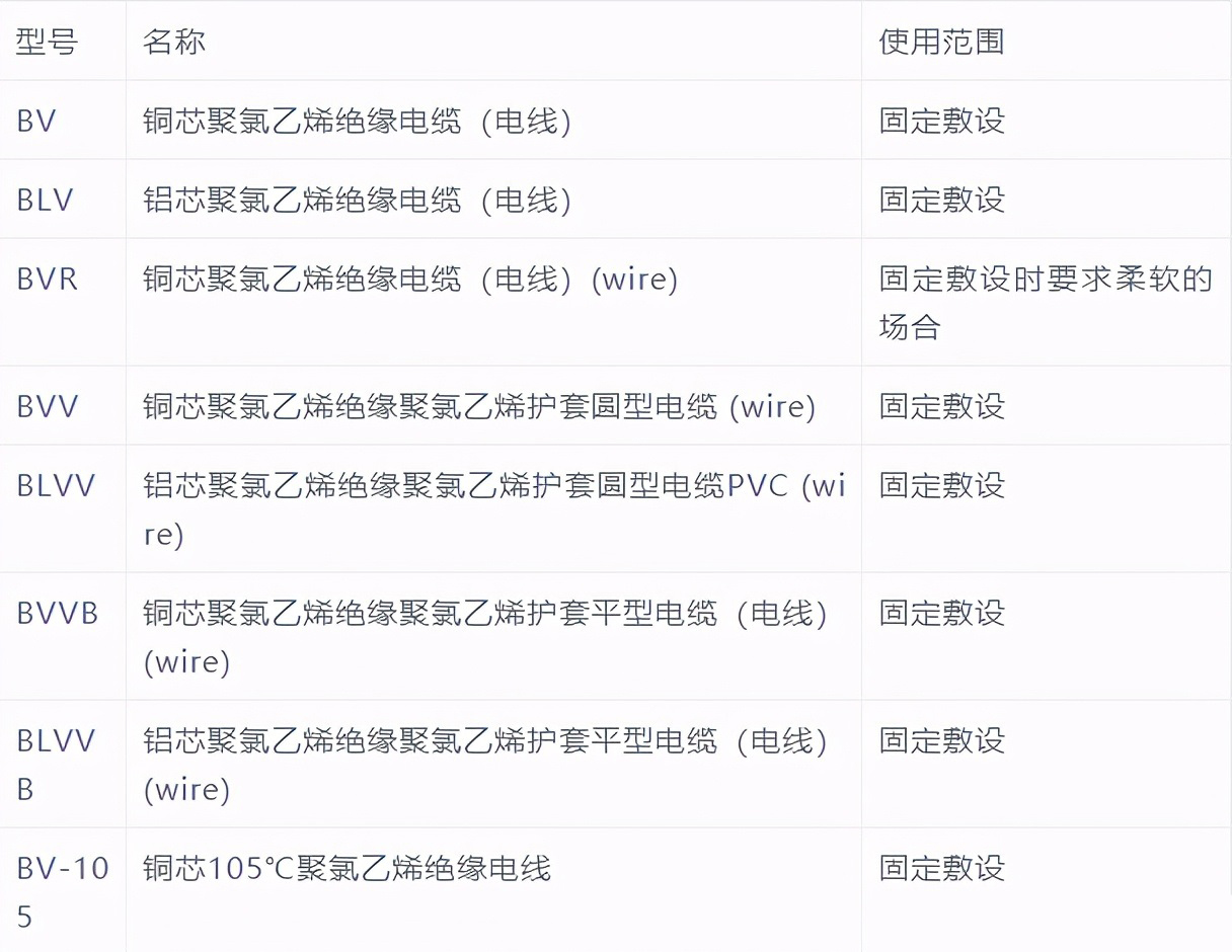 2)电缆的长期允许工作温度:BV-105型 ……应不超过105℃;其他型号……应不超过70℃。