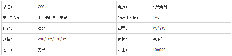 金环宇电缆 VV 、YJV电力电缆参数说明: