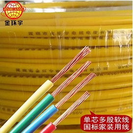 金环宇BVR 1平方电线铜芯聚氯乙烯绝缘软电线,电缆生产厂家金环宇以上型号bvr电线还可以生产阻燃性(ZR)/耐火型(NH)l两种特性。适用于交流电压450/750V及以下动力装置、日用电器、仪表及电信设备用的电缆电线。