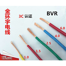 金环宇BVR 6电线中文名:铜芯聚氯乙烯绝缘软护套电线。6表示BVR电线的横截面积。金环宇bvr系列电线常用于家装布线。